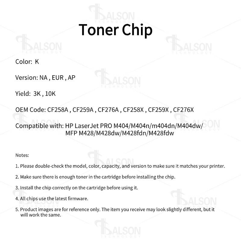 • Ensure your printer model is compatible with the CF259A toner chip for optimal performance.
