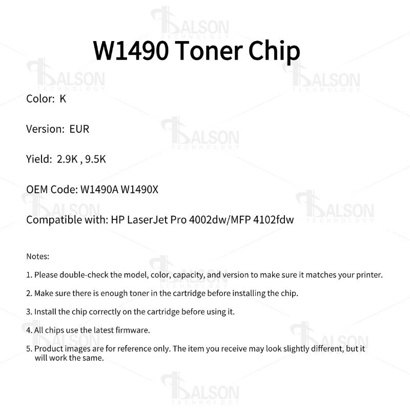 For optimal performance, users should confirm that the chip model matches their toner cartridge model before installation. Proper placement of the toner chip on the toner cartridge ensures accurate detection and prevents printing errors. As a high-value replacement for OEM chips, the W1490A / W1490X printer chip reduces ongoing printing costs while delivering performance comparable to original-brand supplies.