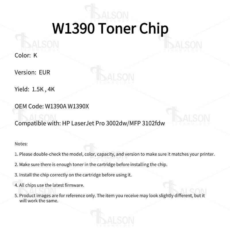 Whether used for daily document printing, enterprise operations, or small office workflows, the W1390A toner chip provides the stability and efficiency required for sharp, consistent black-and-white output.