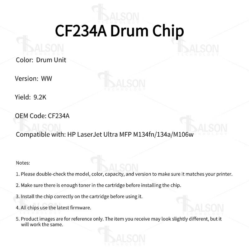 Built for optimized communication between the drum unit and the printer, the CF234A compatible drum chip minimizes common issues such as detection errors, incorrect drum-life reporting, or printing interruptions. With its enhanced compatibility, this drum chip ensures that the drum unit performs consistently, supporting clean, sharp, and uniform black-and-white output for everyday printing needs. Whether used in home offices, business environments, or commercial document workflows, it delivers stable and dependable performance.