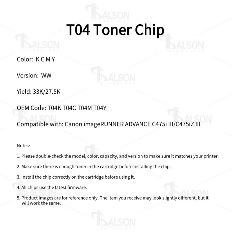 Whether used in large corporate departments or fast-paced print environments, the T04 toner chip delivers reliability, cost savings, and consistent color accuracy. Its durable design and strong compatibility make the T04 toner chip an excellent choice for maintaining uninterrupted, high-quality printing in Canon imageRUNNER ADVANCE systems.