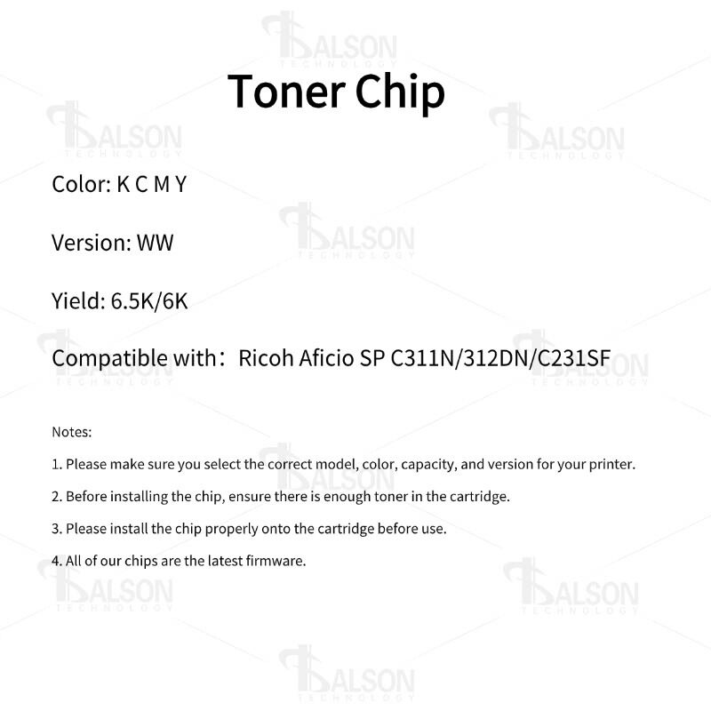 SPC310 Compatible Toner Chip for Ricoh Aficio SP C311N / C312DN / C231SF